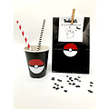 Deze sticker bestaat uit een half wit rondje, een half rood rondje en een witte stip. Door hem op een zwarte ondergrond te plakken, kan je een Pokeball maken.