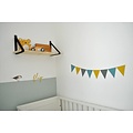 De 3 kleuren triangle muurstickers in mosterd, petrol en grijs zijn zo'n succes, dat moest een aanvulling krijgen. En dat zijn deze toffe vlaggen muurstickers! Gebruik ze in de kinderkamer, maar ook te gebruiken bij een feestje.